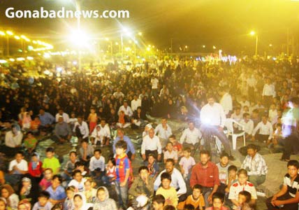 انچه واضح است مراسم ساعت نه و نیم شب آغاز می شود و اصولا در ان ساعت همه مساجد برنامه هایشان تمام شده و تداخلی به آن صورت شکل نمیگیرد از طرفی نوع برنامه ها هم به گونه ای است که امکان اجرا در مکان مقدسی همچون مسجد را ندارد. نوع اهنگ ها هم کاملا شاد است و حتی برخی اهنگ ها نشان از ترانه هایی میدهد که در ان سوی اب اجرا می شود. اما کمی تامل در باب این اهنگ ها مشخص می کند که همگی انها از صدا و سیما هم پخش می شود. اگر دقت کرده باشیم برنامه های موزیکال و شاد تلویزیون مانند برنامه فتیله، گونه ای جدید از موسیقی ها را وارد جشن ها کرد که ترکیبی از اهنگ های آن سوی آب ها هم در آن دیده می شود. این برنامه با تغییر محتوای اهنگ ان را برای اجرا در محافل داخلی تنظیم کرد که مورد توجه مسئولین فرهنگی هم قرار گرفت و بنا به تاثیر تلویزیون به سرعت در تمام جشن ها کشور خود را نشان داد. آنچه در مراسم گناباد اجرا می شود چیزی غیر از این نیست. قریب به اتفاق افرادی که در این جشن ها شرکت می کنند با خانواده حضور دارند و بنابراین آنچه به عنوان اختلاط زن و مرد مطرح شده است همان دور هم نشستن چند خانواده است که از زاویه ای نگاه برخی اینگونه دیده می شود. در این جشن ها مراسم مولودی خوانی بدون استثنا برگزار می شود و مسابقه نقاشی عفاف و حجاب هم برای کودکان برگزار شد که مخاطب با گزارها های مذهبی هم درگیر شود.