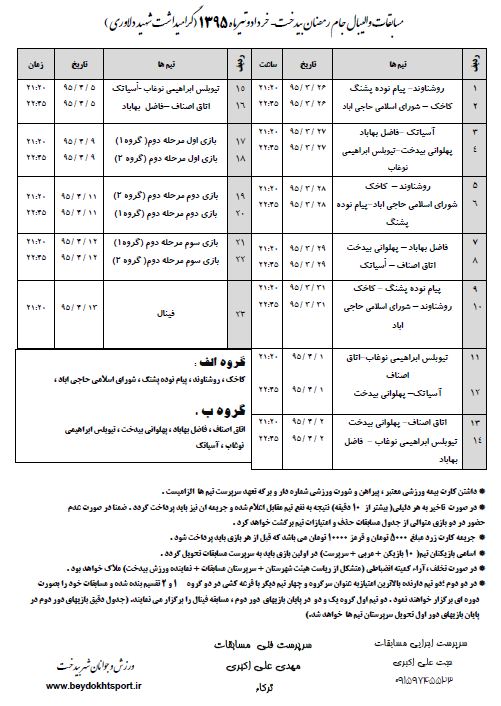 برنامه مسابقات والیبال جام رمضان بیدخت