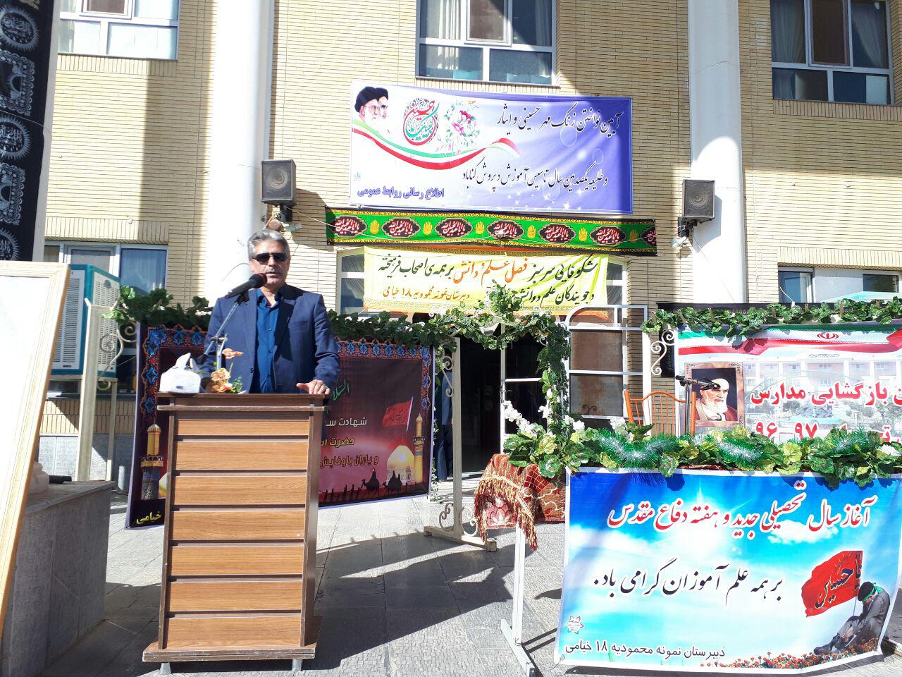 به گزارش گنابادنیوز،محمدعلی نبی پور صبح شنبه در مراسم نواختن زنگ مهر حسینی و ایثار که در دبیرستان نمونه محمودیه این شهرستان برگزار شد اظهار کرد: تقارن آغاز مهر و ماه محرم بسیار ارزشمند است زیرا آموزش و پرورش همیشه دارای دو بال اصلی به نام آموزش و بال دیگر یعنی پرورش بوده است.