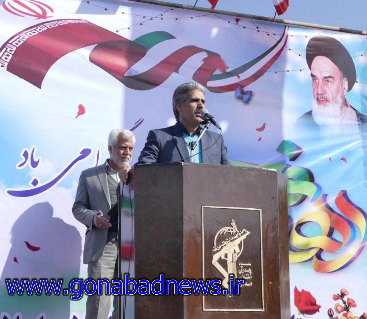 فرماندار گناباد گفت: تحقق آرمانهای بلند انقلاب اسلامی در بخشهای مختلف بدون حضور و مشارکت مردم امکانپذیر نیست لذا بستر مشارکت ملت در همه بخشها بیش از پیش فراهم می شود.