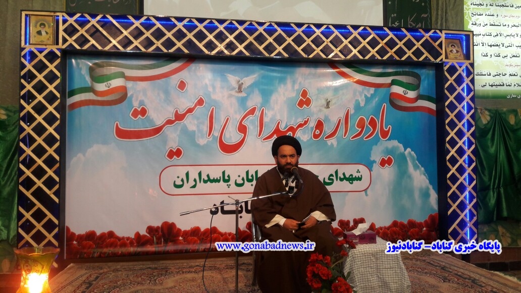 شهدای امنیت- حجت الاسلام سید حسین آقامیریبه گزارش پایگاه خبری گناباد، حجت الاسلام سید حسین آقامیری  سه شنبه شب در یادواره شهدای امنیت در محل مصلی امام خمینی (ره) گناباد اظهار کرد: عصر کنونی که بشر زندگی می کند ناامنی در آن از کل تاریخ بشریت بیشتر بوده است.
