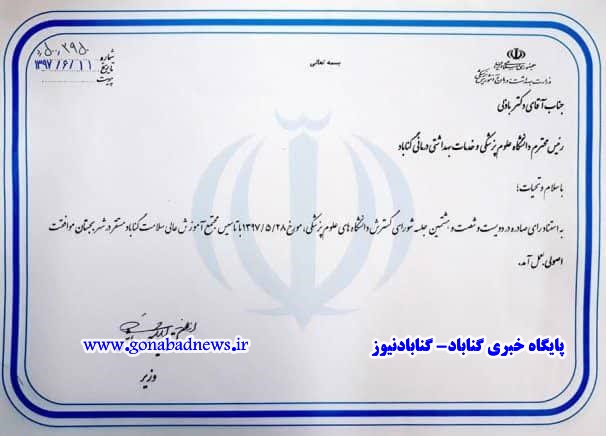 رئیس دانشگاه علوم پزشکی گناباد در پایان با اشاره به روند طولانی مکاتبات اداری و پیگیریها اظهار داشت: بیش از ۸۰ درصد شرایط و اقدامات راه اندازی مجتمع فراهم شده و پیگیریها همچنان ادامه دارد و یقینا از آنجا که بخش اعظم کار ( اخذ مجوز؛ تامین محل فیزیکی و امکانات و تجهیزات) انجام شده است و با توجه به قول مساعد مقام عالی وزارت در سفر اخیر به شهرستانهای گناباد و بجستان در آیندهای نزدیک شاهد راه اندازی آن خواهیم بود.