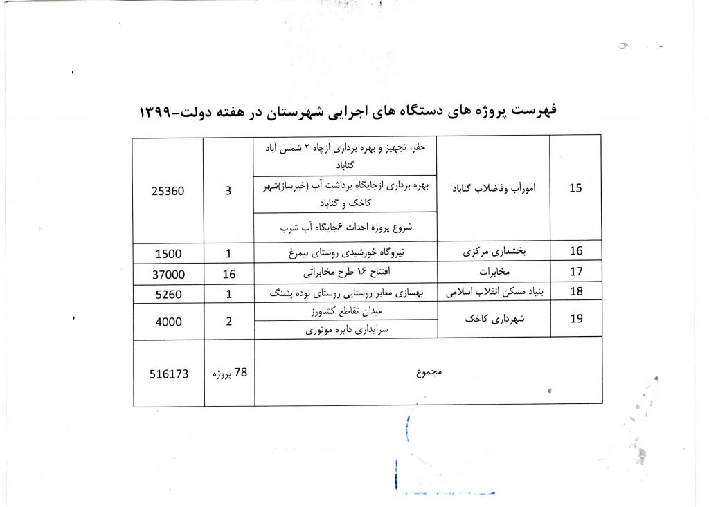 در هفته دولت چند طرح و باچه اعتباری در گناباد به بهره برداری رسید؟
