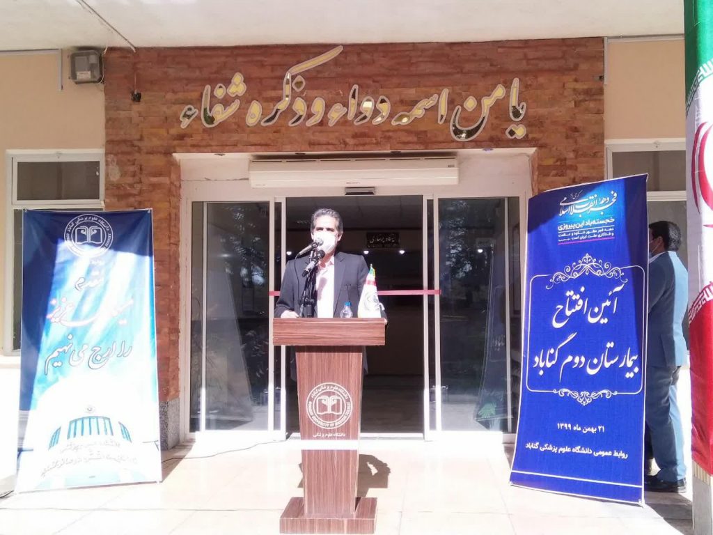 رئیس دانشگاه علوم پزشکی گناباد تصریح کرد: ۳۵ میلیارد تومان برای این بیمارستان هزینه شده و از ابتدای اسفند بیماران کرونایی به این بیمارستان منتقل خواهند شد و بعد از کرونا نیز چهار بخش اصلی خواهد داشت.