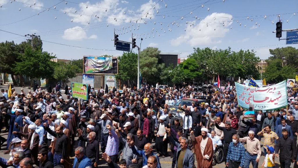 مردم ولایتمدار گناباد با دهان روزه و هوای گرم مسیر میدان آزادگان تا مصلی شهر را پیمودند و فریاد مرگ بر امریکا و مرگ بر اسرائیل سر دادند.