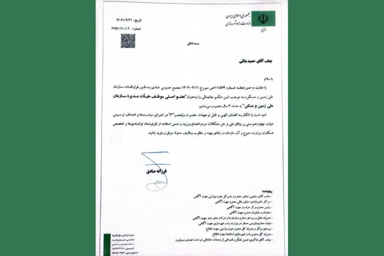 به گزارش پایگاه خبری گناباد، حمید بنایی نماینده دوره دهم مجلس شورای اسلامی و شهردار سابق گناباد با حکم وزیر راه و شهرسازی عضو هیئت مدیره سازمان ملی زمین و مسکن شد.