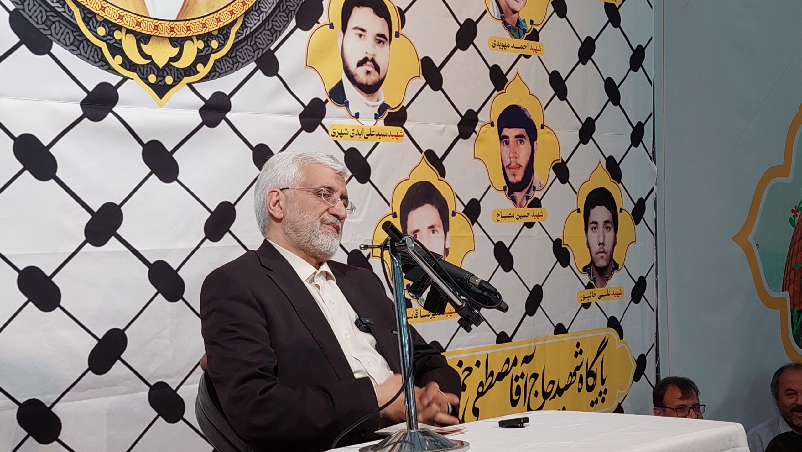 جلیلی با مرور تاریخچه مبارزات ملت ایران خاطرنشان کرد: ملت ما از سال ۴۲ حرکت بزرگی را آغاز کرد و در این ۶۲ سال، راه پرافتخاری را پیموده است. در سال ۵۶ آقا مصطفی به شهادت رسید و اندکی بعد، رئیسجمهور وقت آمریکا با اطمینان از حفظ منافعش در منطقه به ایران آمد. اما امروز پس از ۴۸ سال، جایگاه ایران را در مقایسه با آن ادعاها ببینید.